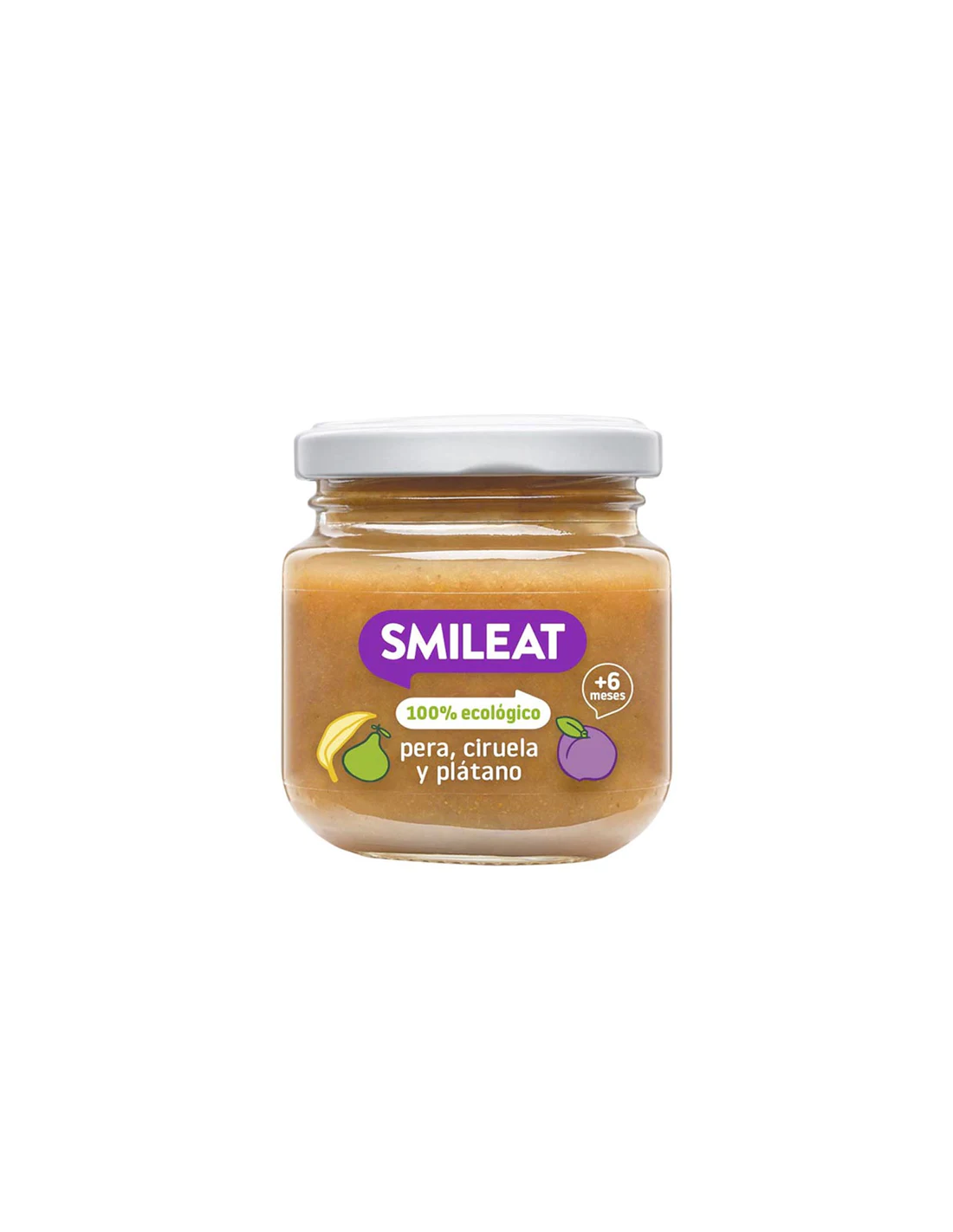 El tarrito de pera, ciruela y plátano de Smileat mejora la receta del anterior tarrito de tres frutas. Ahora, para hacerlo mejor aún, ¡hemos añadido ciruela!