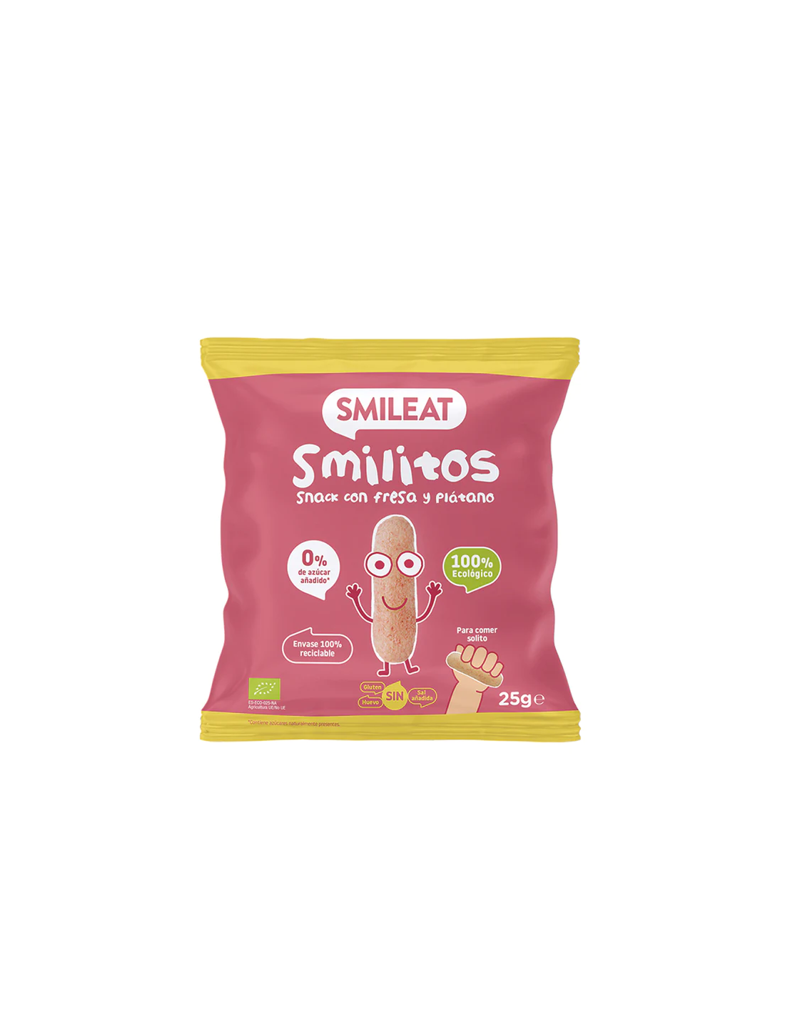 Os traemos los Smilitos, el snack 100% ecológico de moda y más divertido, hecho a base de maíz horneado y aceite de oliva virgen extra, ahora con un nuevo sabor. Los Smilitos de fresa y plátano están para chuparse los dedos y tienen todo lo bueno de los Smilitos de siempre.