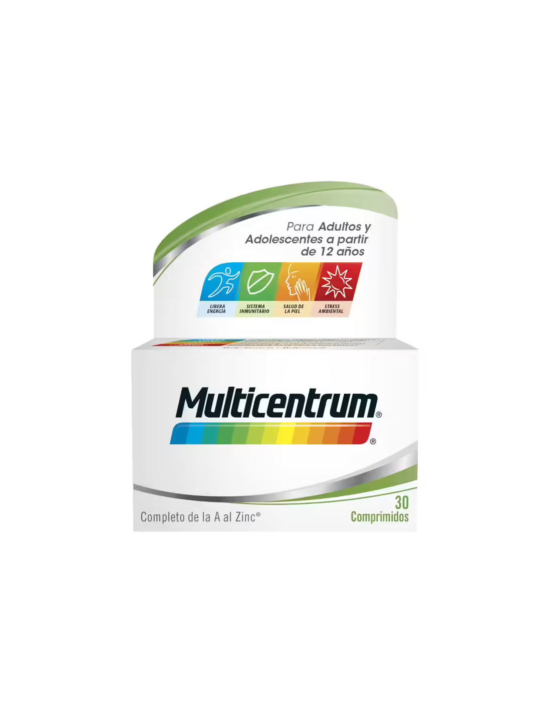 Complemento alimenticio con vitaminas y minerales que ayuda a cubrir los requerimientos nutricionales de adultos y adolescentes a partir de 12 años.